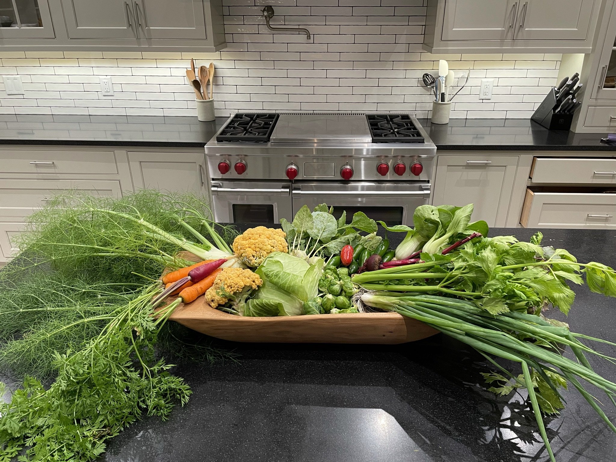 Weekly harvests are shared with guests from June through mid-autumn, often for Thanksgiving. Custom crop plans can be tailored to resident preferences, whether for personal use or in collaboration with personal chefs. Residents frequently arrange garden-to-table meals—from casual lunches under the pergola to evening gatherings at the homes or under the tusk in the barn.